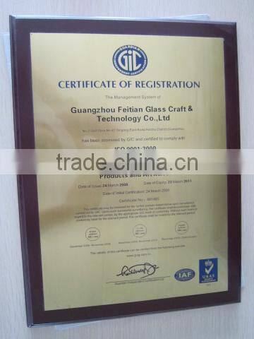 We can do a lot of crafts, liked sand-blasted, frosted, deep carving, bass-relief, computer carving ( U line, V line & W line), water cutting, edge-polished, edge-beveled ( we can do 7 faceted glass), desilverization, all kinds and designs of etched patterns, tempered glass. We apply all these onto our products and never stop developing new technology for production usage.